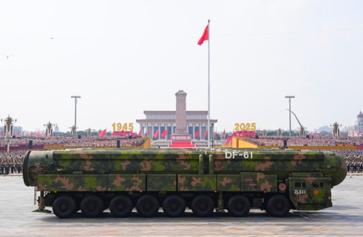 “推测为东风41改良型、射程据说为1万4000公里的新型东风61也首次公开亮相。”