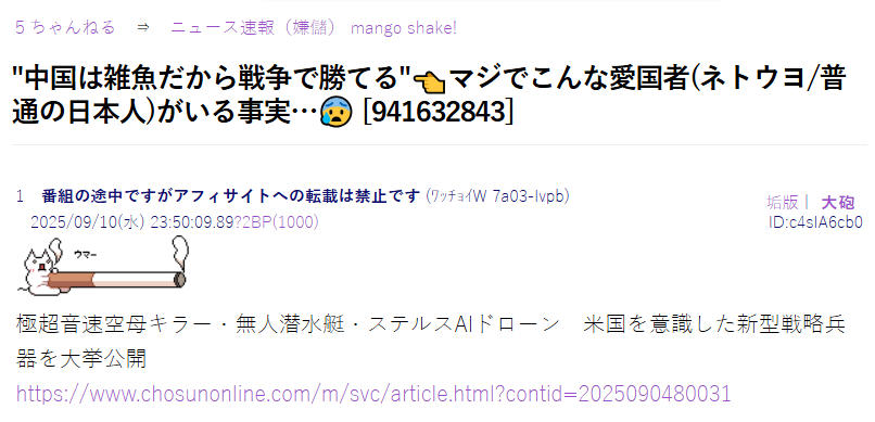 番組の途中です (ワッチョイ 9707-08wO)2025/09/11(木) ID:vX1DdOUp0