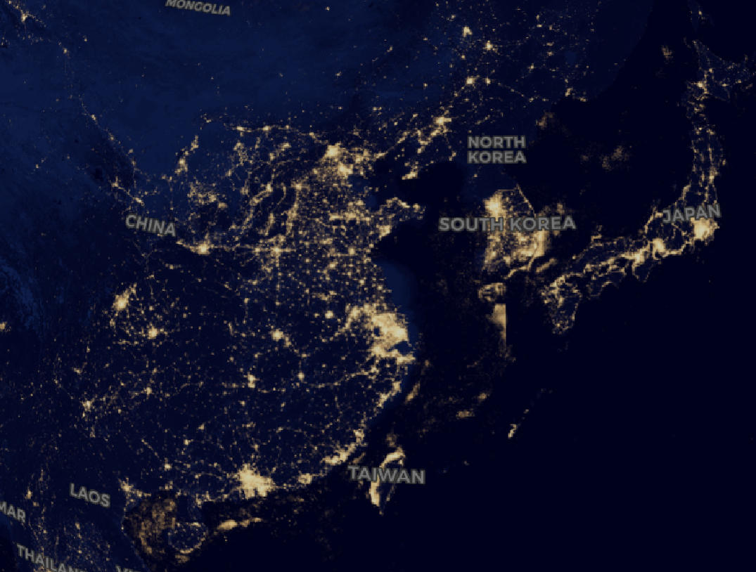 众所周知,从太空看夜间灯光的亮度与GDP有很强的相关性,而根据这种推算,中国的GDP规模其实更大。