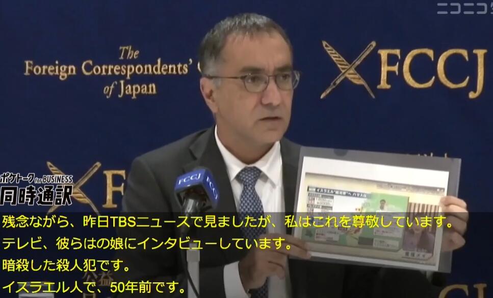 以色列驻日大使吉拉德 · 科亨对重信五月解说中东局势面露难色。