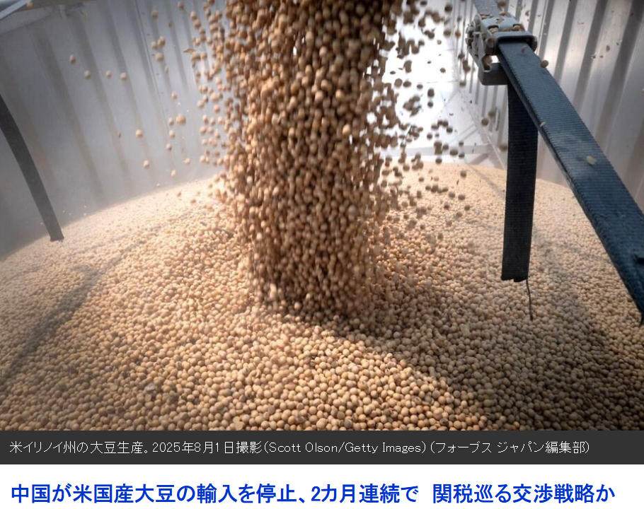 https://www.newsweekjapan.jp/stories/world/2025/09/572272_1.php 「アメリカが支援したばかりのアルゼンチンが、その見返りに、穀物の輸出関税を撤廃し、価格を下げて大量の大豆を中国に売却した。本来、アメリカが中国に輸出するはずだった大豆だ。大豆価格はさらに下落し、中国は貿易交渉でますます優位になった」 アルゼンチンに裏切られてて草