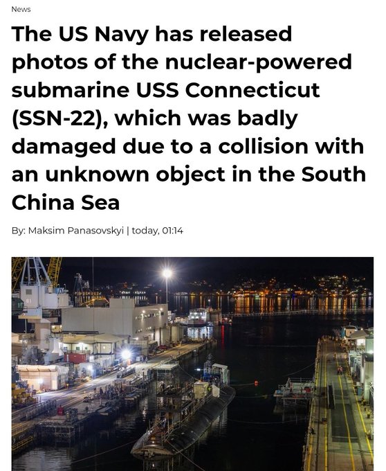 The submarine that hit the mountain in the South China Sea last time has not been repaired yet.#https://pbs.twimg.com/media/G4OtJ1QX0AAbNqN?format=jpg&name=small#https://pbs.twimg.com/media/G4OtJ1IXUAA8tds?format=jpg&name=small