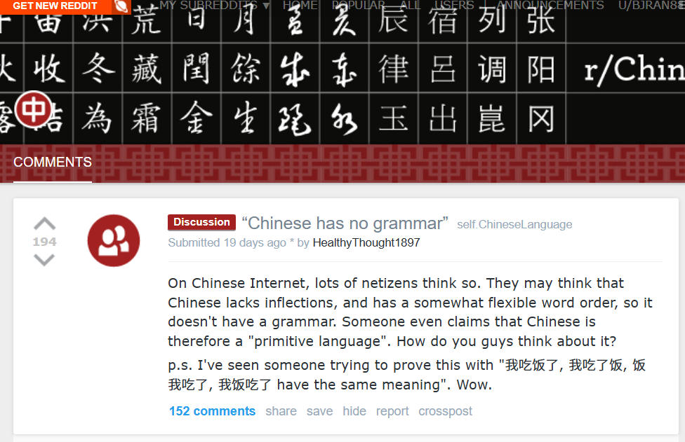 在中文互联网,很多网友也是这么认为的。他们可能觉得中文没有词形变化,语序也比较灵活,所以就没有语法。甚至有人因此声称中文是“原始语言”。你们怎么看?