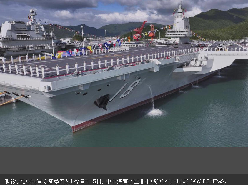 中国軍3隻目の空母「福建」の就役が7日、発表された。索敵能力に優れた早期警戒機が艦載でき、空母の作戦範囲は大幅に拡大するとされる。空母3隻体制によるローテーション運用で常時の作戦展開も可能になるとみられ、日米や台湾などへの威圧が強まるのは必至だ。