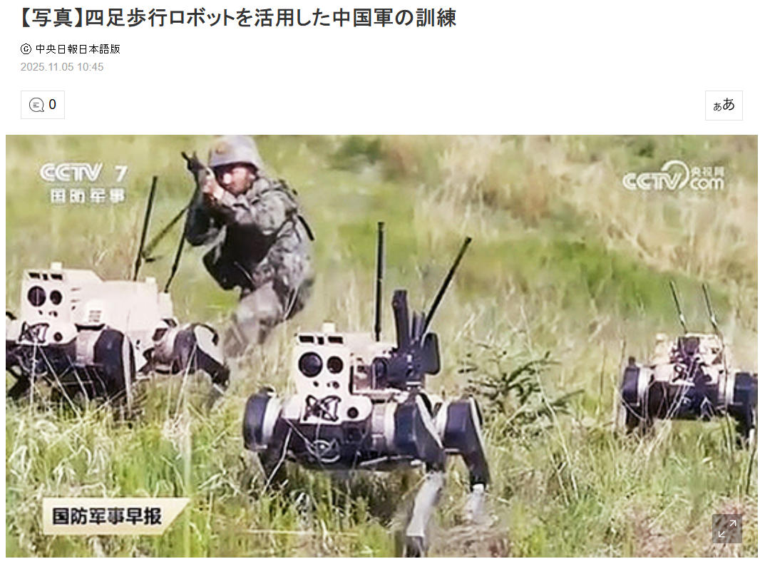 中国人民解放軍が台湾上陸を仮定した実戦型軍事訓練で四足ロボットの「オオカミロボット」を初めて投入したと、中国国営メディアが4日報じた。